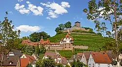 An den Baukomplex schließen sich links die alte Kelter und das zum Landhaus und später zum Verwaltungssitz der Kelter umgebaute alte Pfarrhaus an, die der Baugruppe am Berg das Gepräge eines Schlosses mit Wirtschaftshof geben.