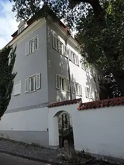 - Aus dem ersten Viertel des 17. Jahrhunderts überliefert ein Stich von Jacob Custos, dass hier ein wohl nahezu quadratischer Bau von zwei Stockwerken mit vier aufgesetzten Ecktürmchen mit spitzen Zeltdächern und (mindestens einem) mittigen Ziergiebel bestand. Dargestellt ist offenbar jenes 'schöne Schlößlein', das 1575 unter Wilhelm Sinzinger errichtet wurde[1].