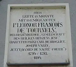 Im Zuge der französischen Revolution gingen zahlreiche Adelige in die Emigration, darunter Pater Léobor Francois de Tournèly, der Gründer der Gesellschaft vom hl. Herzen Jesu, aus der später der Orden Dames du Sacrè Coeur hervorging. Er fand 1794 vorübergehend im leerstehenden Schloss Unterkunft. Daran erinnert eine an der Westfront angebrachte Tafel.