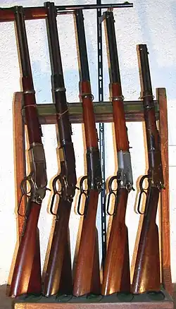 Der eigentliche Durchbruch gelang Oliver Winchester in der zweiten Hälfte des 19. Jahrhunderts mit Konstrukteuren wie Benjamin Tyler Henry (1860) Nelson King (er entwickelte 1866 die seitliche Ladeöffnung) und John Moses Browning (Das Browning Verschlusssystem erlaubte die Verwendung rauchloser Patronen, 1886), die die als Winchester-Gewehr bekannt gewordenen Unterhebelrepetierer entwickelten. Insgesamt wurden über 7 Mio. Winchester „Lever-Actions“ in diversen Kalibern, vom .22 lfB über die .44-40 WCF bis zur .30-06 (Standardpatrone der US Army), hergestellt. Die Firma gab im Jahr 2006 bekannt, dass die Produktion dieser Gewehre, insbesondere des Modells 94, nach über 100 Jahren eingestellt würde. Nur kurz, von 1883 bis 1885 stellte auch Colt den Colt-Burgess Unterhebelrepetierer her. Heute bieten noch Firmen wie die Marlin Firearms Company (seit 2020 Teil von Sturm, Ruger & Co.[3]) solche traditionellen Repetierer eigener Entwicklung an. Das von Marlin weiterentwickelte Modell 1895 ist in seiner größeren Version auch zum Verschießen stärkerer Patronen als der .45-70 Government, der .450 Marlin geeignet. In Italien werden noch heute Nachbauten der bekanntesten Winchester-Gewehre hergestellt. Es gibt auch Flinten mit Unterhebel-Lademechanismus, zum Beispiel Winchester Model 1887 Lever Action Shotgun und Model 1901 im Kaliber 12 und im größeren Kaliber 10, diese sind aber bei weitem nicht so verbreitet wie Vorderschaftrepetierflinten.