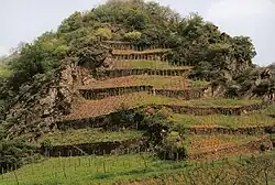 Ende des 19. Jahrhunderts hatte die Terrassierung von Talhängen der Untermosel – vereinzelt fast bis zur Bergkante – wohl ihre größte Ausdehnung erreicht. Die sukzessive Terrassierung hangaufwärts geschah auch besonders in den „Terroirs“, die seit frühester Zeit für begehrte und gut bezahlte Weine bekannt waren. Um größere Mengen produzieren zu können, wurden auch in den Seitentälern und weniger begünstigten Lagen Terrassen angelegt. Um 1880 werden für den Regierungsbezirk Koblenz rund 2500 Hektar zumeist steillagiger Weinbergsflächen genannt.[12]
