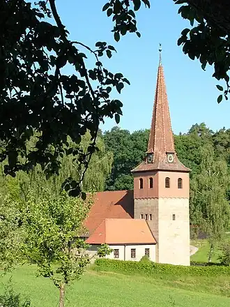 Der Ort ist seit der Reformation evangelisch-lutherisch geprägt und nach St. Alban (Sachsen bei Ansbach) gepfarrt.[11] 1950 wurde auf einem Grundstück, das Georg Schiefer stiftete, eine Kirche errichtet. Obwohl die Christuskirche eigentlich eine Filialkirche von St. Alban ist, wird der Gottesdienst alle zwei Wochen von Professoren und Dozenten der Augustana-Hochschule Neuendettelsau gehalten. Im Gegenzug erhält die Hochschule alljährlich Erntedankgaben des Dorfes.