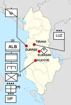 In Albanien sah die Gliederung des militärischen Verbandes wie folgt aus: