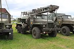 Ural-375D mit Mehrfachraketenwerfersystem BM-21