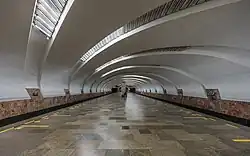 Der Bahnhof mit seinem Mittelbahnsteig hat eine langgezogene helle Kuppel. In die Decke sind parallele diagonal verlaufende Lichtbänder angeordnet, die an das Gewinde einer Schraube erinnern und den Bezug zur Industrieanlage Uralmasch, welche zur Zeit des Baus der Station eines der größten Maschinenbauwerke der Sowjetunion war, auch architektonisch herstellen. Die Lichtbänder sind mit dicht neben einander angebrachten Leuchtstoffröhren ausgefüllt. Wegen der Kuppel aus Stahlbetonteilen, die 18 m überspannt, kommt die Station ohne zusätzliche Säulen und Stützen auf dem Bahnsteig aus. Die Seitenwände sind mit grauem und grau-weißem Marmor aus Nischni Tagil verkleidet. Der Boden besteht aus polierten grauen und braunen Granitplatten. An den Stirnseiten der Bahnhofshalle sind über den Eingängen fast über die gesamte Breite gusseiserne Flachreliefs angebracht, auf denen alle Berufe, die im Uralmasch-Werk vertreten sind, abgebildet sein sollten.
