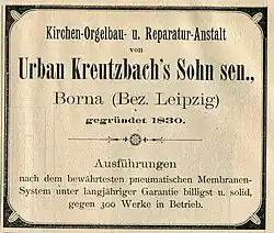 - ↑ Die Kreutzbach'sche Orgelbaufirma in Borna. Abgerufen am 6. Januar 2021.