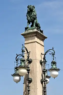 - ↑ Bernadette Fülscher: Löwe, 1881–1887. Urs Eggenschwyler. Hafen Enge bei Mythenquai 61. In: Die Kunst im öffentlichen Raum der Stadt Zürich. 1300 Werke – eine Bestandesaufnahme. Chronos, Zürich 2012, ISBN 978-3-0340-1084-9, S. 308.