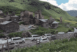 - ↑ Stefan Applis: Tourism sustains, and threatens, Georgia’s highland heritage. Tales of an authentic society living at the edge of time fail to account for higher living standards in the Soviet heyday. eurasianet.org, 2018, abgerufen am 17. Februar 2019 (englisch).