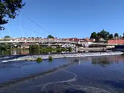 - Dagmar-Šimková-Fußgängerbrücke über dem St. Wenzels-Wehr, die von Josef Pleskot entworfene 140 m lange Brücke über die Otava verbindet Václavské Předměstí mit Hradiště