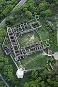 Luftbilder der Burgpalast-Ruine (die als Hotel rekonstruierte Burg rechts):