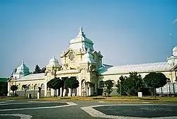 Mittelpunkt des Ausstellungsgeländes ist der im Jugendstil errichtete Industriepalast (Průmyslový palác) mit neobarocken Elementen. Dieser entstand nach Plänen der Architekten Bedřich Münzberger und František Prášil und wurde am 15. März 1891 eröffnet.[2] Das Bauwerk war damals mit Baukosten von 500.000 Goldmünzen das teuerste Gebäude auf dem Gelände. Die Bauausführung oblag der První českomoravská strojírna Kolben-Daněk in Zusammenarbeit mit dem Bauunternehmen des Architekten František Víška und war trotz schlechter Witterungsbedingungen nach nur fünf Monaten fertig. Die Eisenkonstruktion des Bauwerks hat ein Gewicht von 800 Tonnen, die Eisenträger ragen bis in die Höhe von 38 Metern empor. In Böhmen und anderen Teilen von Österreich-Ungarn wurden damals einige Bauwerke in Eisenträgerbauweise errichtet. Architektonisch schließt der Bau die zum Ausstellungsgelände führende Straße Dukelských hrdinů an der sich auch der heute als Kunstmuseum genutzte Veletržní palác (Messepalast) befindet.