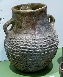 | tonnenförmige Tassen mit lappenförmigen Füßchen; zweihenkelige Schalen, Amphoren, Schüsseln und Krüge | |