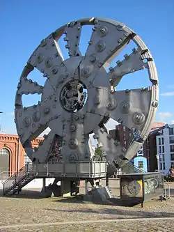 Starke Elektromotoren trieben das schwere Schneidrad, das zum Schutz vor Wassereinbrüchen unter Überdruck stand, mit Rollenmeißeln, Schälmessern und Räumern an und pressten es gegen das Erdreich, die so genannte Ortsbrust. Große Steine wurden automatisch ausgesondert und zertrümmert, nur größere Findlinge (>50 cm) mussten zusätzlich „von Hand“ zerkleinert werden. Der gesamte mit einer Bentonit-Suspension (diente zugleich als Stützflüssigkeit gegen den Druck der Erdmassen und verhindert durch sein spezifisches Gewicht das Eindringen von Grundwasser) verflüssigte Abraum wurde dann abgepumpt und über den Startschacht entsorgt. Dies war der Grund für die Wahl der Bohrrichtung vom Hafen Richtung Innenstadt, da so eine einfach Ent- und Versorgung ohne große Verkehrsbeeinträchtigungen durch die Baustelle gewährleistet wurde.