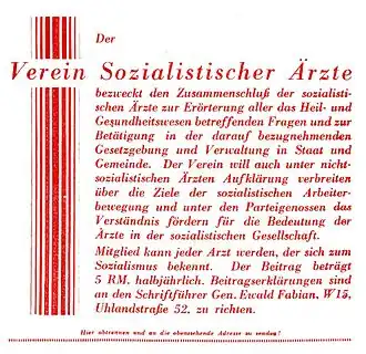 - ↑ An unsere Mitglieder! In: Der sozialistische Arzt, 5. Jg. (1929), Heft 2 (Juni), S. 85; Textarchiv – Internet Archive