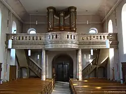 Die Orgel wurde 1815 von dem Heidelberger Orgelbauer Andreas Ubhauser erbaut und erhielt 1904 ein neues zweimanualiges Orgelwerk der Fabrik für Orgelbau H. Voit & Söhne aus Durlach. Die Zinnpfeifen der Orgel mussten 1917 kriegsbedingt abgeliefert werden, sie wurden 1927 durch Zinkpfeifen ersetzt. 1985 wurde das Instrument unter Beibehaltung des Ubhauser-Gehäuses und Resten des Voigt-Pfeifenwerks durch die Überlinger Orgelbauwerkstatt Mönch erneuert. Nach der Restaurierung verfügt die Orgel über 27 klingende Register mit 1620 Orgelpfeifen aus Zinn-Legierungen und Holz auf zwei Manualen und Pedal.[1]