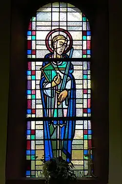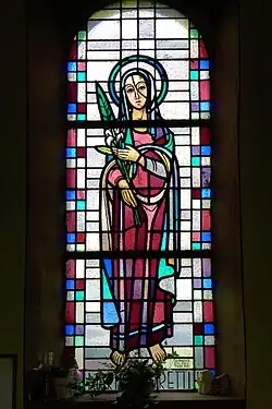 Das linke Fenster des Chorraumes zeigt eine Darstellung der italienischen Jungfrau und Märtyrerin Maria Goretti. Die Heiligsprechung Maria Gorettis war erst am 24. Juni 1950 Papst Pius XII. bei einer Feier vor einer halben Million Gläubigen auf dem Petersplatz in Rom erfolgt. Insofern ist ihre Darstellung in der Valentinuskapelle ein frühes Zeugnis ihrer Verehrung als Heilige der katholischen Kirche. In der Valentinuskapelle ist Maria Goretti mit den Attributen der Jungfräulichkeit und des Martyriums (Lilie und Märtyrerpalme) in antikisierenden Gewändern dargestellt. Ihr Gedenktag ist der 6. Juli.