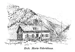 Mit der Errichtung wurde der Weg ins Naßfelder Tal ausgebaut. Infolgedessen glich das Haus bald mehr einer viel besuchten Jausenstation als einer Alpenvereinshütte. An der Wende vom 19. zum 20. Jahrhundert ging das Valeriehaus vom Alpenverein in Privatbesitz über. In den 1920er und 1930er Jahren wurde es von Mai bis Oktober vollumfänglich und in den Wintermonaten einfach bewirtschaftet.[4] Zu den prominenten Gästen vor dem Zweiten Weltkrieg zählten Großherzogin Alicia von Bourbon-Parma, Fürst Albert von Thurn und Taxis,[5] Prinz Heinrich XXXIX. Reuß zu Köstritz[6] und der Philosoph Georg Misch.[7]