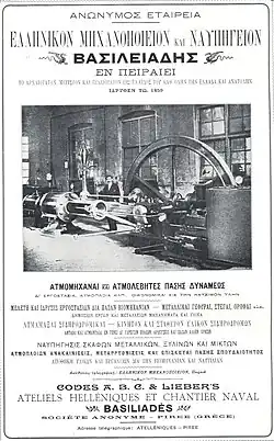 Angefangen mit einer Werft, entwickelte sich Vasiliadis Ende des 19. Jahrhunderts zum führenden Industriekonzern Südosteuropas. Das Sortiment umfasste eine breite Palette von Lokomotiven und Dampfmaschinen über Kräne bis zu Brücken. Anfangs hoch profitabel verlor das Unternehmen im 20. Jahrhundert massiv an Marktanteilen. Dem griechischen Staat erschien der Industriebetrieb nicht förderungswürdig, die Produkte mussten sich jedoch gegen hoch subventionierte Produkte aus dem Ausland behaupten, was nie mehr gelang.