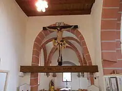 Der Triumphbogen zwischen Langhaus und Hohem Chor zeigt eine Darstellung des Jüngsten Gerichts vom Ende des 15. Jahrhunderts. An der Decke des Langhauses befinden sich 16 Kassetten aus der Renaissance.