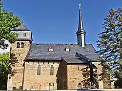 Die Pfarrkirche St. Veit ist über 1000 Jahre alt. Sie ist die älteste Kirche des Vogtlands und gehört mit zu den ältesten Kirchen Thüringens.[1] Das Gotteshaus war Mittelpunkt eines Burgwardgebiets um Weida. Bis zum 17. Jahrhundert wurde es immer wieder umgebaut und erweitert, so dass sich in ihm Stilarten mehrerer Epochen vereint haben.