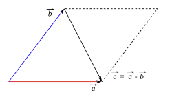 • Als denjenigen Vektor, der zu addiert gerade ergibt. Stellt man und durch Pfeile mit demselben Anfangspunkt dar, so wird durch den Pfeil dargestellt, der vom Endpunkt des zweiten Vektors zum Endpunkt des ersten Vektors führt.
