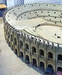 Model des Amphitheaters von Arles mit teils aufgespanntem Velarium.