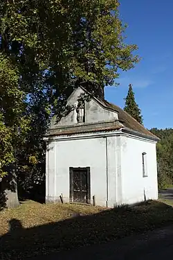 - Kapelle des hl. Johannes von Nepomuk auf den Dorfplatz, errichtet zu Beginn des 19. Jahrhunderts. Der Fonds für die Unterhaltung und Ausstattung der Kapelle wurde von der Herrschaft Waltsch verwaltet. 1909 erfolgte eine Renovierung, bei der auch das Interieur erneuert wurde. Am 3. Mai 1958 wurde die Kapelle in das Verzeichnis der Kulturdenkmale aufgenommen. Dessen ungeachtet blieb die Kapelle in der zweiten Hälfte des 20. Jahrhunderts dem Verfall überlassen. Die Ausstattung wurde gestohlen oder zerstört. Zu Beginn der 1990er Jahre war in Folge des undichten Daches ein Teil der Decke durchgebrochen und das Mauerwerk bei den Fenstern gerissen. Vor 1993 erfolgte eine Generalsanierung.[6]