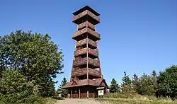 Auf dem Gipfel wurde 1934 ein Triangulationsturm errichtet, der später auch als Aussichtsturm diente. Er wurde 1967 aufgrund seines baufälligen Zustands entfernt. Im Frühjahr 2012 gab das staatliche Unternehmen Lesy České republiky seine Absicht bekannt, auf dem Gipfel einen neuen Aussichtsturm zu errichten. Der Turm wurde am 15. August 2013 eröffnet.[2][3] Das Holzgebäude ist 25 Meter hoch und besitzt zwei Aussichtsplattformen in 15 Meter und 20 Meter Höhe. Der Eintritt ist frei.