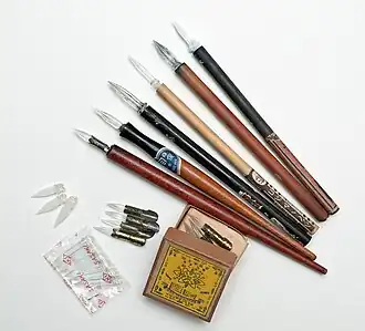 - ↑ Sase Industry Co., Ltd.: ガラスペンの歴史 ("Geschichte der Glasfedern"). In: Website von Sase Industry Co., Ltd. Sase Industry Co., Ltd., abgerufen am 14. Oktober 2023 (japanisch).