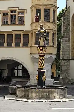 - ↑ a b altstadt-biel-bienne.ch, Der Vennerbrunnen im Ring / La fontaine du banneret sur la Place du Ring, abgerufen am 27. August 2022.