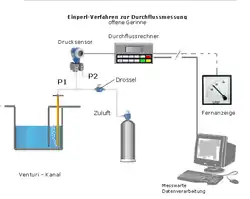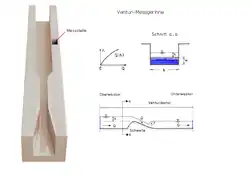 - Bauartkalibrierte Rinnen, die als Fertigteile eingebaut werden, in verschiedenen Formen Khafagi-Venturi, Parshall-Rinne, Palmer-Bowlus-Rinne etc.