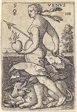 Das astronomische Symbol des Planeten Venus, das Venussymbol ♀, gilt als stilisierte Repräsentation des Handspiegels der namensgebenden römischen Liebesgöttin Venus.[2]