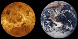 | Größenvergleich zwischen Venus (links als Radarkarte) und Erde | |