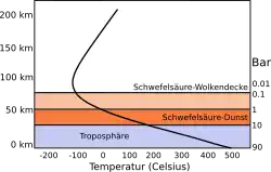 - ↑ Sanjay S. Limaye et al.: The thermal structure of the Venus atmosphere: Intercomparison of Venus Express and ground based observations of vertical temperature and density profiles. Icarus 294, 2017, doi:10.1016/j.icarus.2017.04.020 (freier Volltext, siehe Abb. 15).