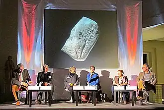 Der Sandstein mit der Gravur fand sich in einem präborealen Schichtzusammenhang im Bereich von Feuersteinartefakten, die technologisch sowie typologisch zwischen Inventaren der Federmesser-Gruppen (12.000–10.800 v. Chr.) und Inventaren des Frühmesolithikums (ab 9600 v. Chr.) stehen. Datierungen mittels der Radiokarbonmethode, die an Holzkohleresten der Feuerstelle vorgenommen wurden, ergaben eine Zeitstellung zwischen 9200 und 8800 v. Chr. Da der Sandstein stratigraphisch und im Kontext abgesichert ist, ist seine Nutzungszeit im frühen Mesolithikum belegt. Ähnlich stilisierte Personendarstellungen sind bereits aus der Zeit des Magdalénien (18.000-12.000 v. Chr.) bekannt.[3]