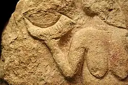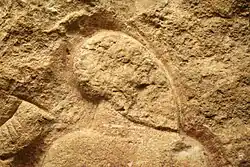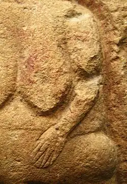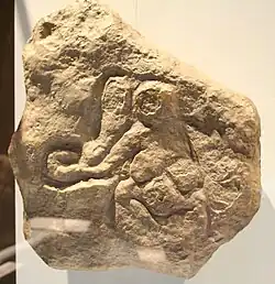 - ein Relief mit zwei Personen, eine davon ist sicher weiblich (franz. Personages opposées). Möglicherweise ist eine Entbindung dargestellt.
