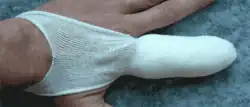 - Schutz vor mechanischer Belastung (Ruhigstellung), dies können Belastungen durch Bewegung sein, die zum Aufklaffen einer Wunde oder zum Zerreißen neugebildeten Gewebes führen könnten, aber auch Druckbelastungen sein. Typisches Beispiel ist der Gipsverband