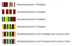 Der Zweite Prototyp der einklassigen Medaille gleicht dem Ersten Typ und unterscheidet sich nur in seinem Ordensband. Die pentagonale Spange ist 24 mm breit und die Farbkombination (von links nach rechts): Weinrot (4 mm) – Weiß (3 mm) – Weinrot (4 mm) – Gelb (2 mm) – Weinrot (4 mm) – Weiß (3 mm) – Weinrot (4 mm). Die dazugehörige 24 mm breite und 13 mm hohe Interimspange ist von gleicher Beschaffenheit.
