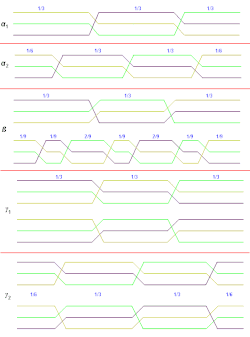 Da dies zu einer unterschiedlichen Abfolge der Phasen am Anfang und Ende der Leitung führt, wird stattdessen oft mit dem α2-Schema gearbeitet, bei dem die 1/3-Verdrillung in zwei zu je 1/6 aufgeteilt wird.