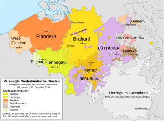Unabhängig von den Brabanter Ereignissen kam es 1789 im Hochstift Lüttich zur Lütticher Revolution. Die Revolutionäre errichteten eine Republik und traten den Vereinigten Staaten von Belgien in einer Art Allianz bei.