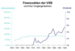 Unter der Wirtschaftskrise Ende der 1870er-Jahre hatten die VSB wie viele andere Gesellschaften schwer zu leiden. Ihre Aktienkurse sanken massiv. Im Gegensatz zur NOB oder zur Schweizerischen Centralbahn konnten die VSB ab 1871 jeweils eine bescheidene Dividende ausschütten. Weil den VSB nach 1859 ein weiterer Netzausbau verwehrt blieb, war die Finanzbasis mit einer geringen Verschuldung sehr solide.