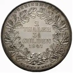 1842 trat Luxemburg ohne genaue Festlegung der Hauptwährungsmünze dem Münzverein bei. Ab 1857 prägten auch die Vereinsguldenländer und Österreich den einfachen und doppelten Vereinstaler zusätzlich zum Gulden.