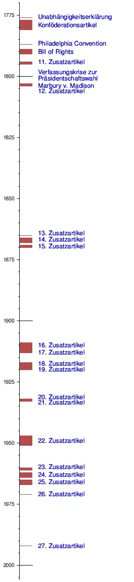Von den 33 Verfassungsänderungen, die der Kongress den Bundesstaaten zur Ratifikation vorgelegt hatte, scheiterten sechs an der Mehrheitsschwelle, davon könnten vier theoretisch noch angenommen werden. Seit dem 18. Zusatzartikel umfasste jeder Vorschlag, außer dem 19. und dem nicht ratifizierten Artikel bezüglich Kinderarbeit, eine ausdrückliche zeitliche Beschränkung der Ratifikation.