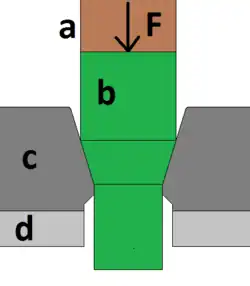 Beim Verjüngen werden Rohre oder Stangen als Rohteil verwendet und wie bei allen Verfahren des Durchdrückens durch ein hohles Werkzeug (Matrize) gedrückt, das im Falle des Verjüngens und Strangpressens die zu erzeugende Querschnittsform enthält. Beim Verjüngen werden die Rohteile vor der Öffnung der Matrize – im Gegensatz zu den Schwesterverfahren – nicht gestützt, weshalb es zum Knicken oder Beulen kommen kann, wenn die freie Länge zu groß ist. Wegen der fehlenden Abstützung kann das Verjüngen jedoch gut mit anderen Verfahren kombiniert werden.