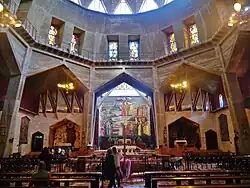 Die heutige Verkündigungsbasilika ist bereits das fünfte Gotteshaus über der Verkündigungsgrotte; sie wurde von dem italienischen Architekten Giovanni Muzio erbaut und am 23. März 1969 geweiht.[1] Die dreischiffige Basilika ist 67,5 Meter lang und 35 Meter hoch; sie ist die größte Kirche im Nahen Osten und eine seiner größten heiligen Stätten. Über den Ruinen der früheren wurden zwei miteinander verbundene Kirchen aus Stein errichtet, die Ober- und die Unterkirche. Die Besonderheit des Gebäudes liegt in dem zentralen Kuppelbau, der die drei Ebenen des Gebäudes miteinander verbindet. In der Unterkirche befindet sich der Ort, den die Tradition als Ort der Verkündigung ansieht. Die Oberkirche enthält viele Mosaiken, Fresken und Skulpturen. Der Kuppelbau darüber ist schlicht ausgeführt.