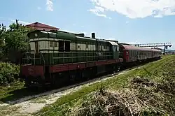 Der Bau des Normalspurnetzes nach dem Zweiten Weltkrieg diente vor allem dem Transport von Mineralien aus den Bergwerken zum Hafen von Durrës und in die weiterverarbeitenden Fabriken.[67] Die Gebirgslandschaft stellte große Herausforderungen an die Erbauer. Erst Mitte der 1980er Jahre erfolgte mit der Eröffnung der Bahnstrecke Podgorica–Shkodra der Anschluss ans internationale Bahnnetz.[68] Zustand und Ausbau waren bescheiden, die Strecken sind durchgängig eingleisig,[31] nicht elektrifiziert. Sitz der albanischen Eisenbahngesellschaft Hekurudha Shqiptare und Zentrum des Bahnnetzes ist Durrës.[56]