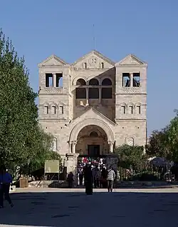 Die Architektur der Basilika orientiert sich an frühchristlichen Kirchen in Syrien mit der Fassadenarchitektur wie auch der Inneneinrichtung. Die dreischiffige Basilika wurde über den Grundmauern einer früheren Kirche errichtet. Architekt war Antonio Barluzzi.