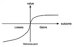 Am Referenzpunkt besitzt die Funktion einen Wendepunkt. Die Kurve verläuft konkav für Gewinne und konvex für Verluste. Individuen sind im Bereich möglicher Gewinne risikoavers und im Bereich möglicher Verluste risikoaffin. Die Krümmung bildet das Prinzip der abnehmenden Sensitivität (englisch diminishing sensitivity) ab. Da die Wertfunktion im Verlustbereich steiler als im Gewinnbereich verläuft, sieht man, dass Verluste stärker gewichtet werden als Gewinne.