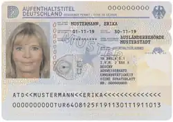 Die Änderungsverordnung sieht weder ein Aufklebermodell noch das früher verwendete ID-2-Karten-Format vor. Aufenthaltstitel werden nun einheitlich im ID-1-Kartenformat ausgestellt.[15] Die Karte besteht vollständig aus Polycarbonat oder einem vergleichbaren synthetischen Polymer und soll eine Lebensdauer von 10 Jahren haben. Als Datenträger wird wiederum ein kontaktloser RFID-Mikrochip verwendet, der dieselben biometrischen Daten wie das Vorgängermodell enthält. Den Mitgliedstaaten steht es wiederum frei, für innerstaatliche Zwecke ein Dual Interface oder einen gesonderten Kontaktchip auf der Rückseite anzubringen. In Deutschland erhielt der neue elektronische Aufenthaltstitel nationale Designelemente und Mikroschriften.[16]