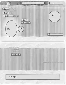 - 13. Ein Lichtbild wird sicher in die Karte integriert und durch ein beugungsoptisch variables Merkmal („diffractive optically variable image device“ – DOVID) gesichert.